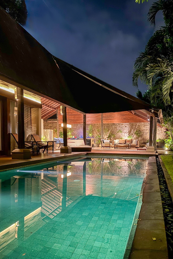 リビングルーム&バスルーム棟と、リビングルーム&ダイニングルーム棟が、プールを挟み別棟になったユニークな間取りが特徴で、ヴィラのどこにいてもプライベートプールを眺めることができます。
