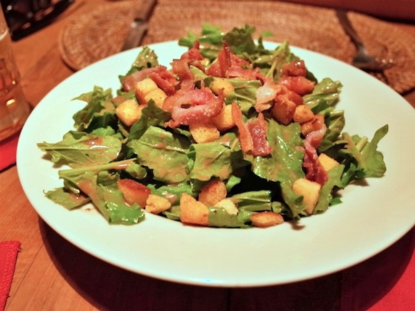 イタリアのルッコラサラダは、新鮮シャキシャキのルッコラで、カリカリベーコンとクルトンがアクセントで美味しいサラダです。