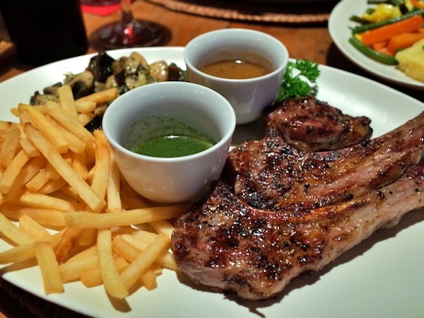 炭火で焼かれたラムチョップは、香りもよくジューシーで、焼き方がとても良くプロのシェフが焼いているのが分かります。フライドポテトとキノコのソテーも美味しかったです。