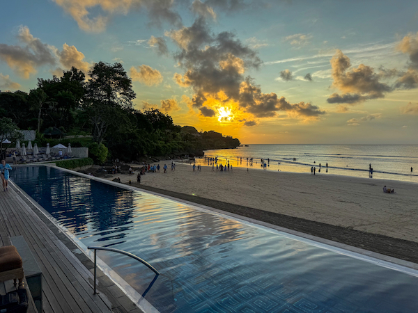 ホテルのプールと違うのは、基本、バリ島のホテルのプールは宿泊ゲスト専用で、外部のゲストが使えるところは少なく、そして海沿いのホテルは大体高級ホテルが連なり、高いので何泊も出来ないですよね。