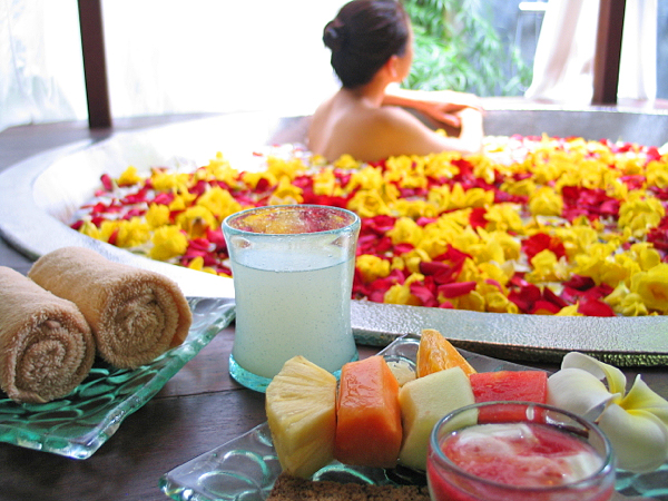 実際問題として、スパについて、「ただフラワーバスに入る」という人は稀で、ボディマッサージを受けたり、フェイシャルを受けたり、いくつかのトリートメントと組み合わせた方が、フラワーバスの効果も高くなります。