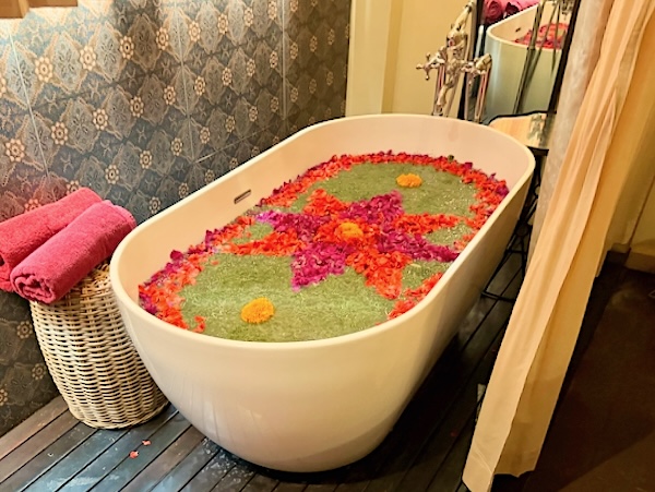 ウブドのチャンパカスパでは、スパと合わせてオプションでデザインが選べる凝ったフラワーバスがあります。映えたいあなたはどれにする?