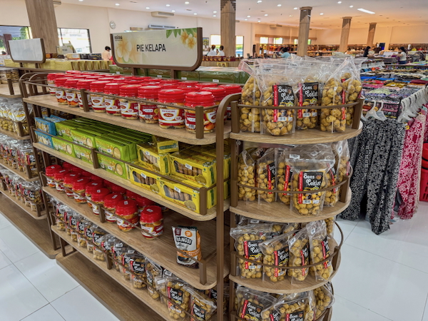 パイスス(pie susu)、塩味ピーナッツ、鶏足チップス、ドドル(ゼリー状のローカル菓子)等、インドネシア全開の定番土産も売っています。