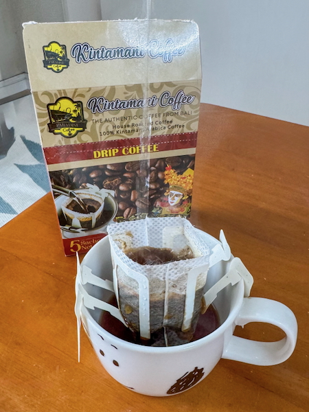 安い物やビニール袋に入ってるコーヒーは、米粉を入れてカサ増ししている物もあるそうなので、Kopi Baliがおすすめです。