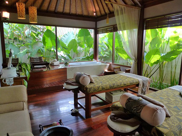 - スパヴィラ内にマッサージ台、ソファ、バスタブ、バスルーム、トイレが完備され、一歩お部屋に入れば移動の不便はありません。