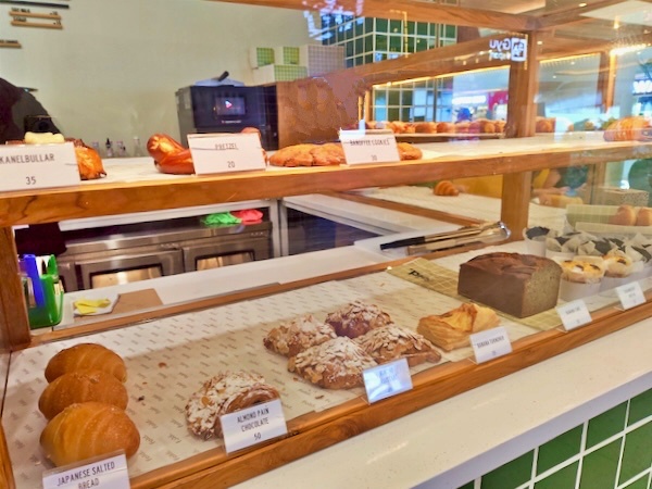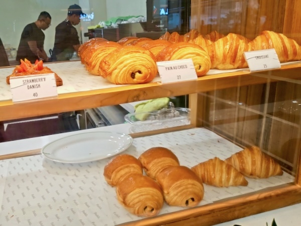 ショーケースには店内で焼いているクロワッサン、デニッシュ、ドーナッツ、パウンドケーキ、マフィンが並びます。クロワッサンは1個 25,000ルピアです。