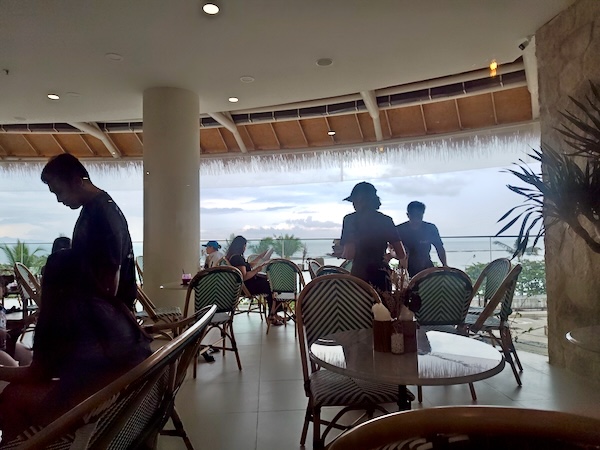 ガラスで分けられたテラス席からは、サヌールビーチが見渡せます。