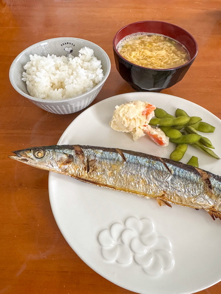 秋刀魚を盛ってみたら大きすぎて、皿に乗り切らずでしたが、ジェンガラ陶器の素晴らしいところは、食事の見た目をアップしてくれるのと、和洋中、どんな料理にも合うことでしょう。