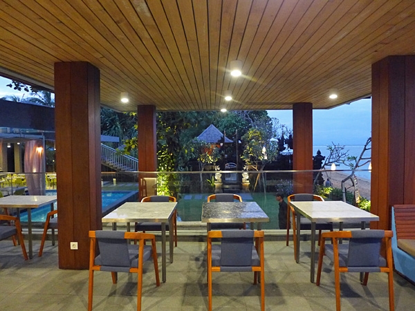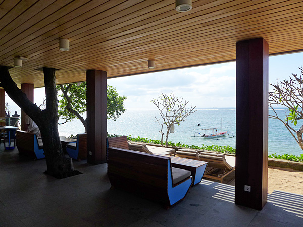 - サヌールビーチに沿いにあるバーで、海を眺めながらお酒が楽しめます