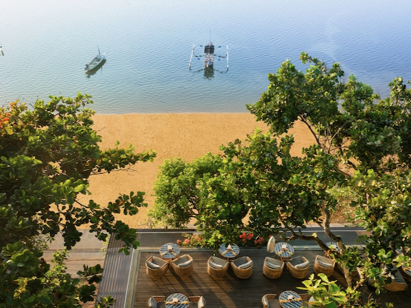ところが、マヤ サヌール リゾート&スパにあるツリーバーは、遊歩道より一段高い位置に作られているため、目の前を遮られる心配がありません。