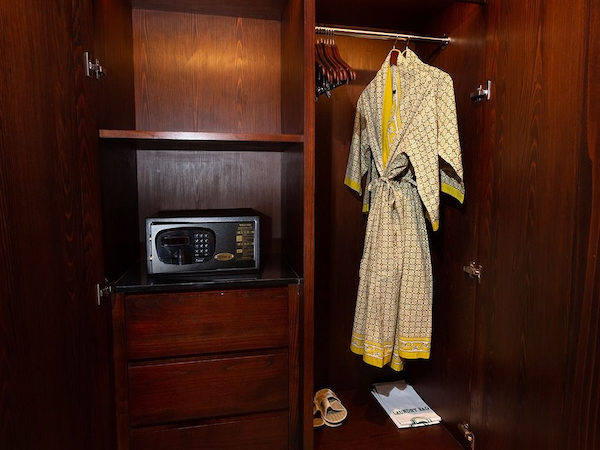 - 全室エアコン、冷蔵庫、薄型テレビ(NHK視聴可能)、セイフティボックス、電話、コーヒー&紅茶セット有り。バスローブ、スリッパ、ドライヤー、バスアメニティ有り。