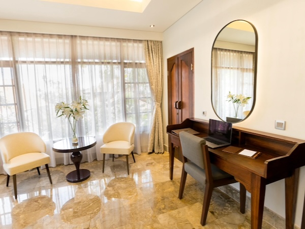 最下カテゴリーのスーペリアでも38平米と広く、地価の高騰で敷地を狭くせざるを得ない最近バリ島に新しくオープンするホテルが、決して真似できない余裕を感じます。