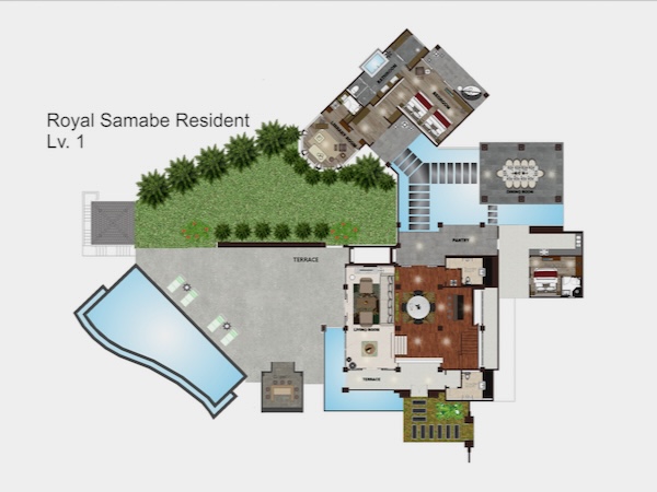 ヴィラは敷地に点在し、海に最も近いヴィラがプライム オーシャンプールヴィラとなる。2ベッドルーム ペントハウス プールヴィラのみスイート棟。またロイヤル サマべ レジデンス以外、全て平屋。