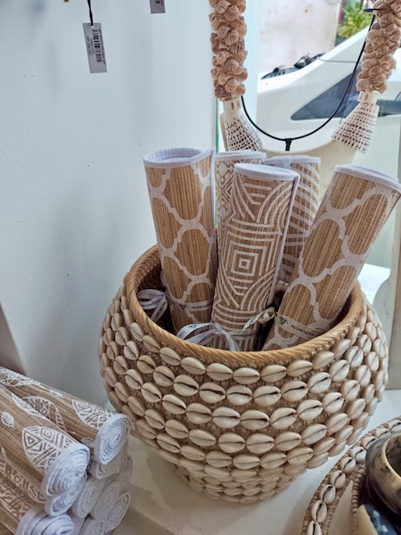 アイテムとしては、食器、カトラリー、カッティングボード等のキッチン雑貨を始め、クッション、カゴバッグ、タペストリー等の雑貨とリゾートドレスやワンピースなどがあり、季節やトレンドに合わせて定期的に商品が入れ変わっています。