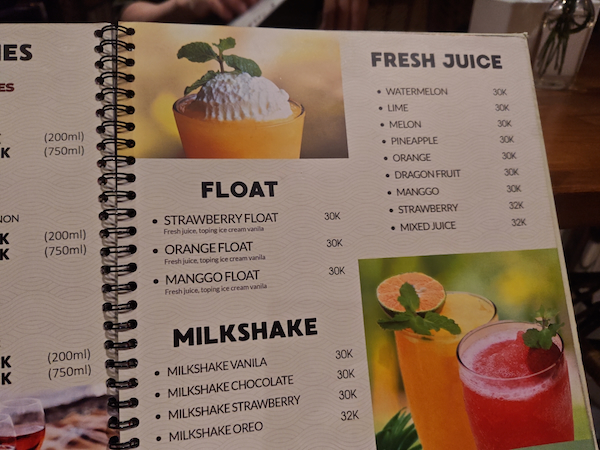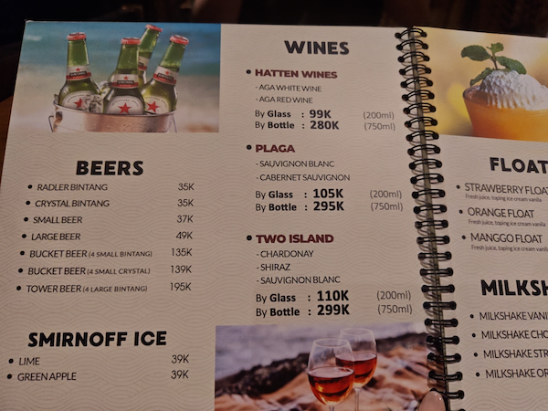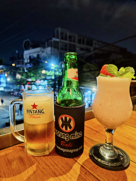 まずはビンタンビール(35,000ルピア)とストロベリーシェイク(30,000ルピア)をオーダーし、ホッと一息。