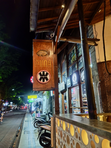 ワルン ミナ レギャンはレギャン通りに面した分かりやすい立地にあり、オープンエアの開放的な店内で、観光の途中でも気軽に立ち寄りやすい雰囲気のレストランです。